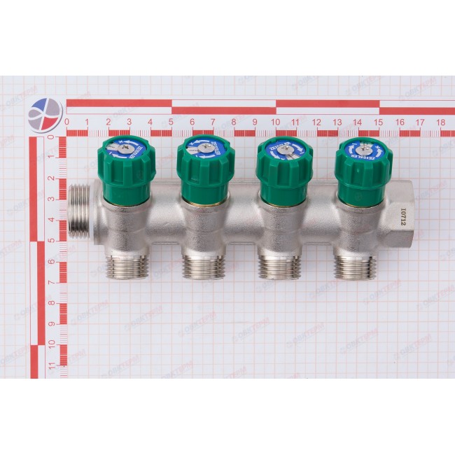 Количество в упаковке: 4шт. Количество в коробке: 16шт. Коллектор для воды 3/4" х 1/2 Евроконус на 4 выхода ТИМ под конус с регулировкой необходим для распределения подведенной от магистрали жидкости, от основного трубопровода к требуемым точкам водоразбора. Позволяет менять подачу воды. Температура перекачиваемой жидкости до 110С, давление - до 10 бар. Диаметр общего выхода - 3/4", с одной стороны внешняя резьба, с другой - внутренняя.