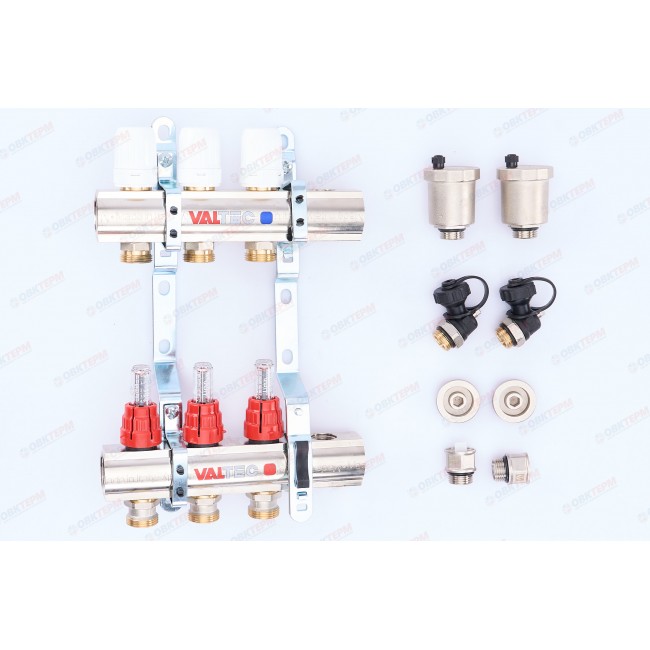 Коллекторная группа со встроенными расходомерами в сборе 1*3 выхода евроконус 3/4" VTc.596.EMNX.0603 Valtec