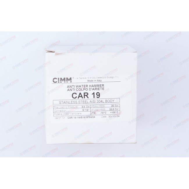 Мембранный гаситель гидроударов VT.CAR 19 предназначен для компенсации скачков давления, возникающих при резком открытии или закрытии запорной арматуры в квартирных системах водоснабжения. Устройство также играет роль расширительного бака, принимающего избыток объема воды, который возникает в трубах при естественном нагреве в отсутствие водоразбора. Компенсатор гидроударов VT.CAR 19 представляет собой миниатюрный бак из нержавеющей стали марки AISI 304L с внутренней разделительной мембраной из эластомера EPDM. Небольшие выпуклости на поверхности мембраны обеспечивают ее неплотное примыкание к корпусу и максимальную площадь контакта мембраны с транспортируемой средой. Емкость гасителя гидравлических ударов VT.CAR 19 – 0,162 л, заводская настройка давления в воздушной камере – 3,5 бара, максимальное рабочее давление в защищаемом квартирном водопроводе – 10 бар, предельное давление при гидроударе – 20 бар, максимальная рабочая температура – 100 °С. Диаметр присоединительной резьбы – 1/2".