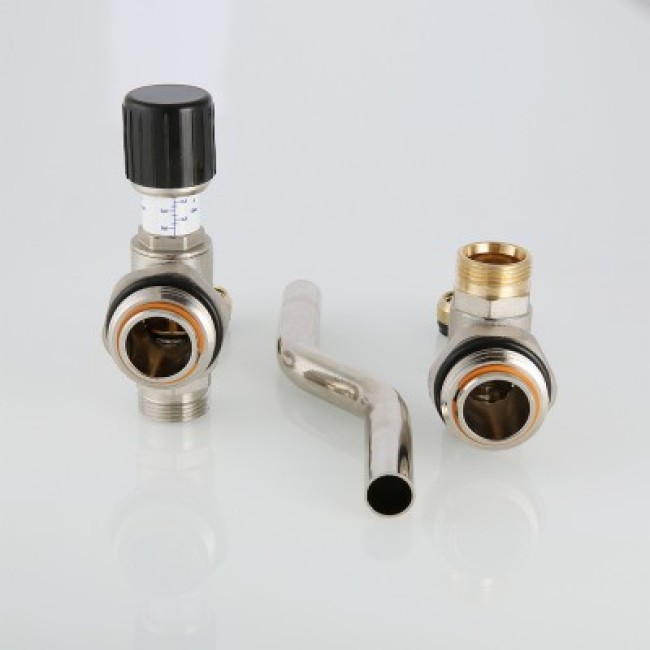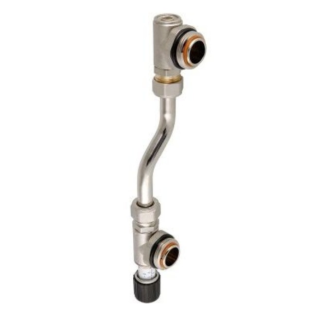 Коллекторный байпас «замыкает» поток теплоносителя напольного, радиаторного отопления, другой климатической системы, направляя жидкость к обратному коллектору, когда расход через греющие петли становится ниже заданного значения. Это защищает циркуляционный насос от работы «на закрытую задвижку», сохраняет гидравлические характеристики системы, циркуляцию при перекрытии коллекторных петель. Действие байпаса основано на применении перепускного клапана.Место установки тупикового байпаса – противоположная относительно точек подключения сторона коллекторного узла. Материал корпуса – латунь марки CW617N, перепускной трубки – медь, уплотнений – EPDM. Гальванопокрытие – никелирование. Изделие применимо при температуре не выше 120 °C, давлении до 10 бар. Диапазон настройки перепада давлений – 20–60 кПа, пропускная способность Kvs – 4,33 м3/ч.