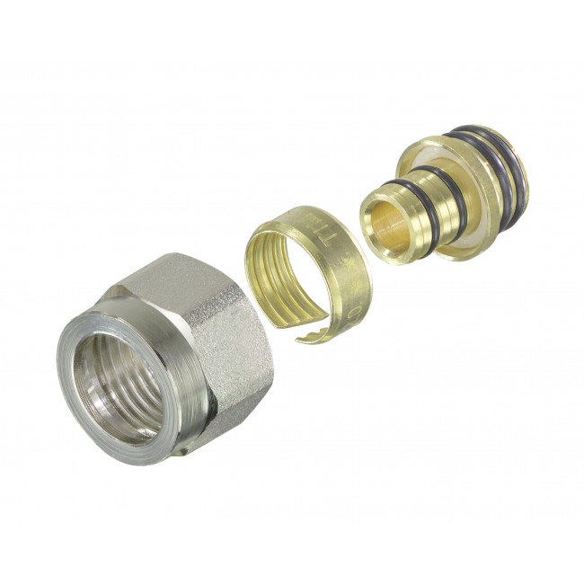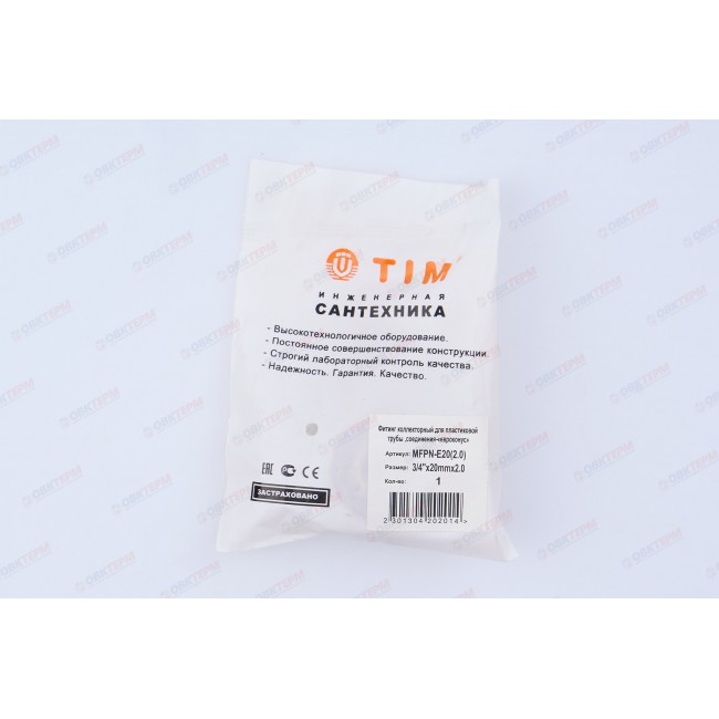 Евроконус для коллектора под сшитый полиэтилен трубу 3/4"-20-2.0, евро TIM MFPN-E20(2.0). Евроконус G3/4"вн - 20 (2.0) - Соединительный элемент состоящий из накидной гайки, обжимного кольца и конуса. Позволяет герметично соединить, 20-ую пластиковую трубу толщиной 2.0 мм с наружной резьбой 3/4" за счет обжима трубы кольцом, в процессе затягивания резьбы