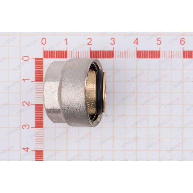 Количество в упаковке: 2шт. Латунный фитинг с накидной гайкой и обжимным кольцом для подключения металлополимерной трубы к коллектору VALTEC с выходами диаметром 3/4", стандарт соединения – «евроконус».