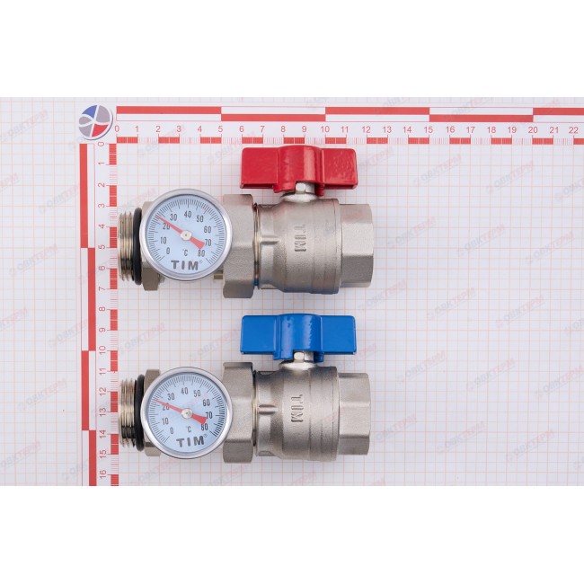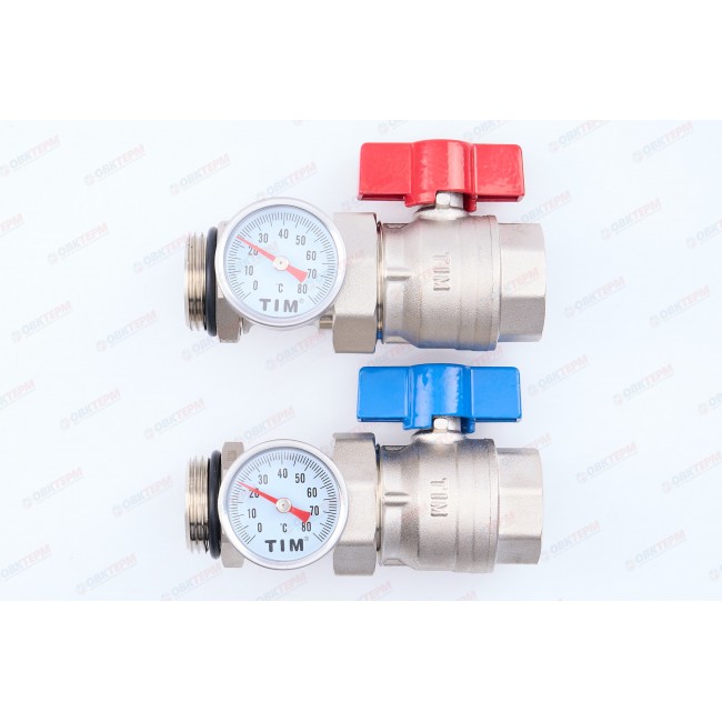 Кран шаровый 1" с накидной гайкой и термометрами пара M308-4 TIM