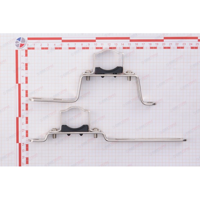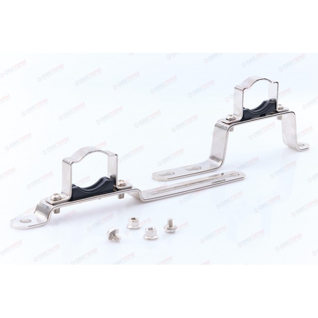 Состоит из крепежной планки, выполненной из стальной анодированной полосы толщиной 3 мм. В хомуты вставлены прокладки из эластомера, служащие тепло- и виброзащитой и предохраняющие коллекторы от механических повреждений. Кронштейн, обеспечивает разнос коллекторов размером 1" по высоте от 180 до 230 мм (между осями) и на 50 мм по глубине.