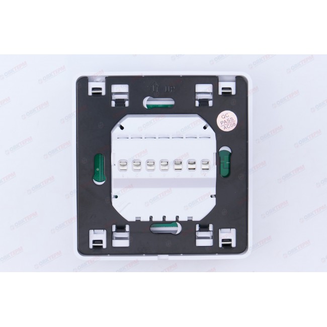 Программируемый терморегулятор TIM M6.713 с возможностью понедельного программирования. Позволяет настроить температурные режимы для 6 периодов, в течение всего дня для более комфортного и экономичного распределения ресурсов. Обладает встроенным датчиком температуры воздуха и температуры пола. Электронный термостат (панель управления комнатный),