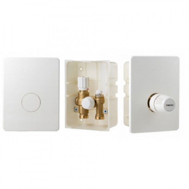 Терморегулирующие монтажные модули VT.ICBOX предназначены для создания водяного теплого пола на площадях до 15 кв. м, настенного водяного отопления или регулирования работы приборов водяного отопления. Комплекты VT.ICBOX позволяют подключать низкотемпературную систему к первичному контуру отопления без насосно-смесительного узла. При использовании модулей для регулирования работы отопительных приборов не требуется установка терморегуляторов непосредственно на радиаторах и конвекторах, повышается качество терморегулирования (отсутствует влияние конвективных потоков). VT.ICBOX-2 – комплект со встроенным автоматическим регулятором температуры теплоносителя и термостатическим клапаном, управляемым термоголовкой (VT.1000, VT.5000; устройства управления в комплект поставки не входят).