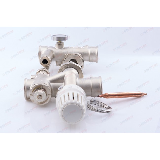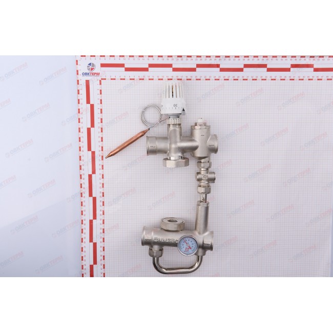 Насосно-смесительный узел VALTEC VALMIX предназначен для создания в системе отопления здания открытого циркуляционного контура с пониженной до настроечного значения температурой теплоносителя. Узел обеспечивает поддержание заданной температуры и расхода во вторичном циркуляционном контуре, а также позволяет регулировать температуру и расход теплоносителя в зависимости от требований пользователя. Узел VALMIX используется, как правило, в системах встроенного обогрева (теплый пол, теплые стены, обогрев открытых площадок и т.п.). Насосно-смесительный узел адаптирован для совместного применения с распределительными коллекторами петель теплого пола при межцентровом расстоянии между коллекторами 200 мм. Узел поставляется без циркуляционного насоса.