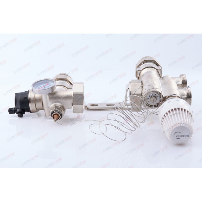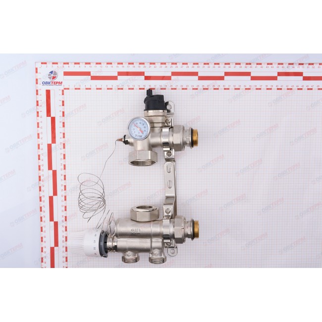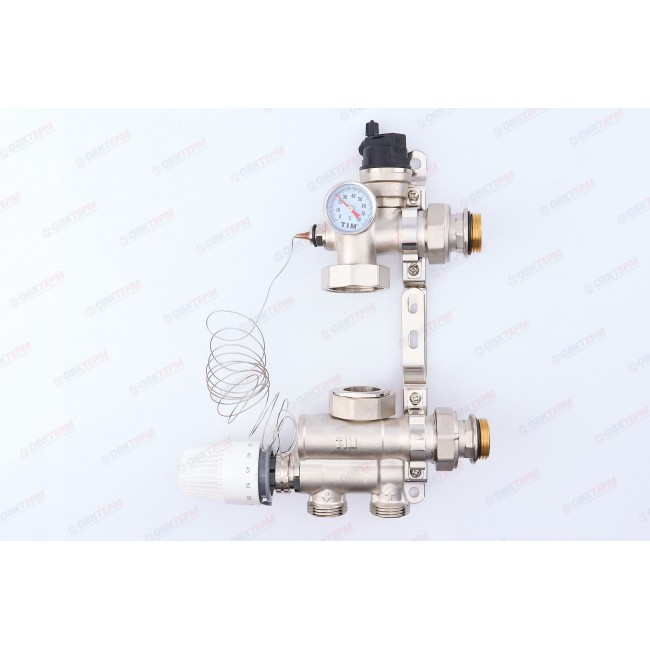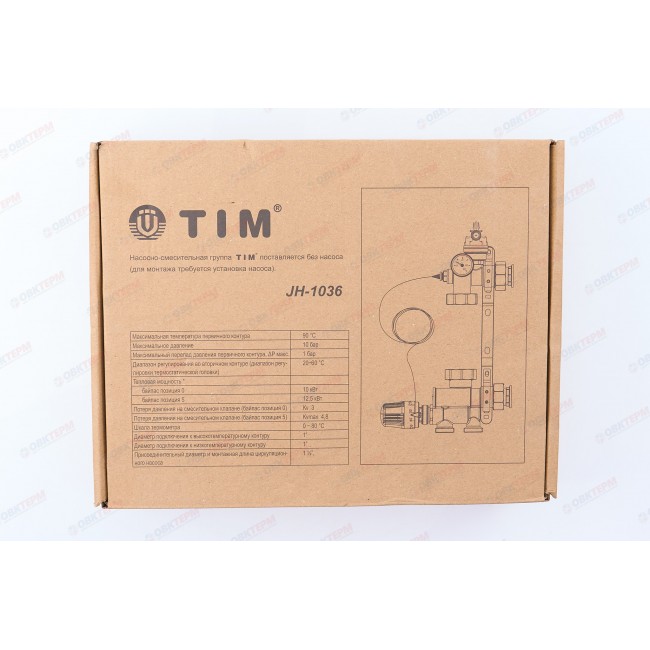 Насосно-смесительная группа без насоса TIM JH-1036. Группа предназначена для создания низкотемпературных систем отопления (типа "теплый пол"). Монтируется непосредственно на коллекторной группе низкотемпературного контура и подключается к высокотемпературному контуру системы отопления. - 10 бар; -Максимальный перепад давления первичного контура, ΔP макс. - 1 бар.