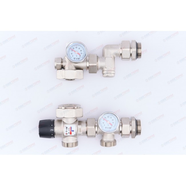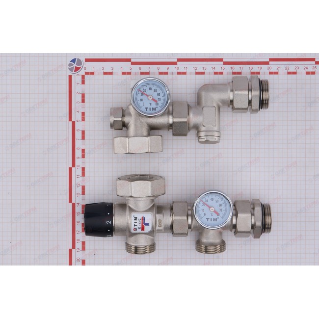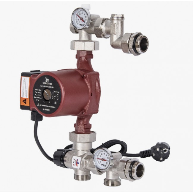 Насосно-смесительная группа без насоса TIM JH-1036. Группа предназначена для создания низкотемпературных систем отопления (типа "теплый пол"). Монтируется непосредственно на коллекторной группе низкотемпературного контура и подключается к высокотемпературному контуру системы отопления. - 10 бар; -Максимальный перепад давления первичного контура, ΔP макс. - 1 бар.