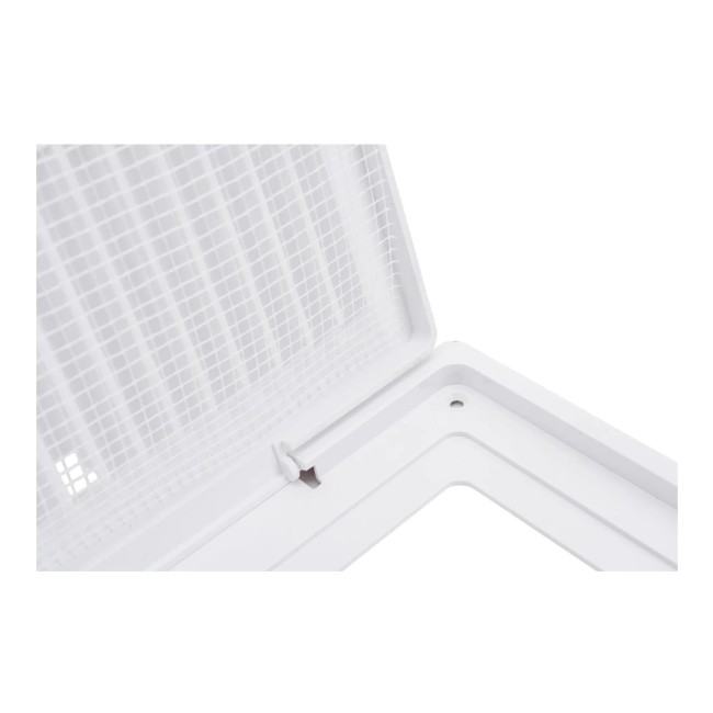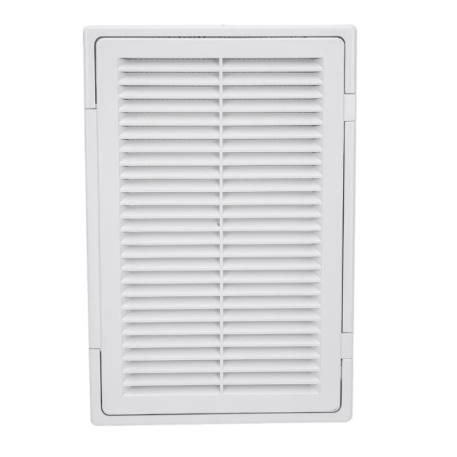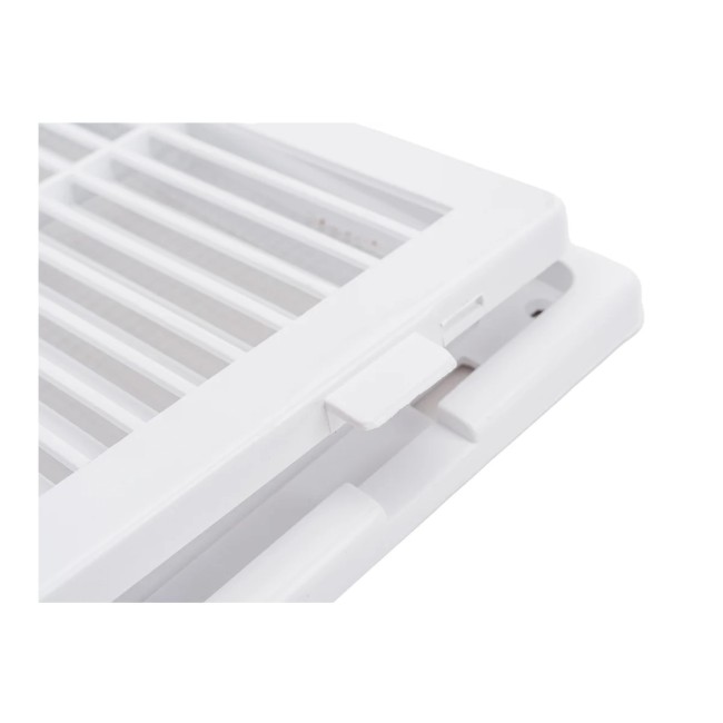 Решётка-дверца предназначена для декоративного оформления выходов приточных или вытяжных вентиляционных систем. Конструкция состоит из рамы-короба, подходящей для установки в бетон, пенобетон, кирпич или гипсокартон, и решётчатой дверцы. Наклонные жалюзи скрывают шахту вентиляции и придают ей эстетичный вид. Изготавливается из высококачественного ABS-пластик. Модель оснащена антимоскитной сеткой, которая препятствует попаданию внутрь мусора, пыли, насекомых. Монтаж осуществляется с помощью клея или саморезов.