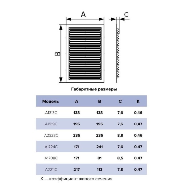 Решетка вентиляционная АС Ш217*В113 (75шт/уп) Эра