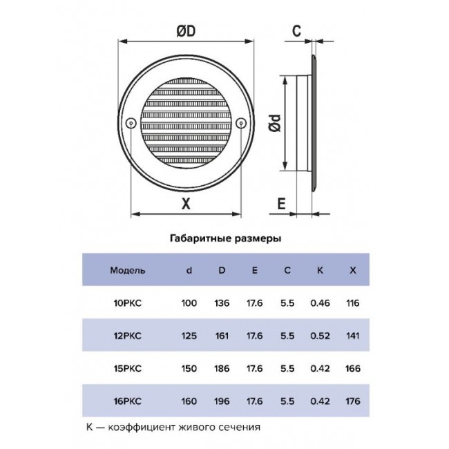 Круглая вентиляционная решетка РКС используется для декоративного оформления выходов приточных и вытяжных вентиляционных систем. Оснащена износостойкой пластиковой сеткой с увеличенным сроком службы, которая предотвращает попадание пыли и насекомых в помещение. Изделие оборудовано монтажным фланцем для соединения с круглыми воздуховодами. Наклонные жалюзи скрывают шахту вентиляции и придают ей эстетичный вид.