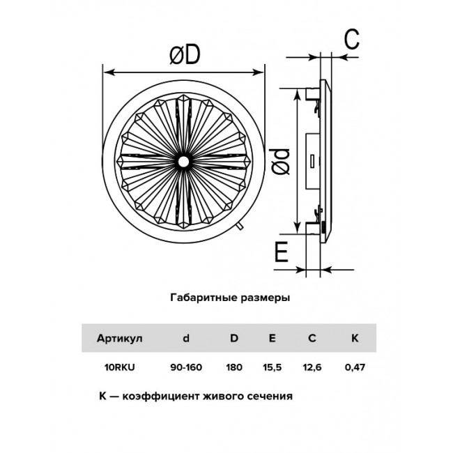 Решетка вентиляционная круглая RKU d180, с регулируемым фланцем d90-160 (18шт/уп) Эра