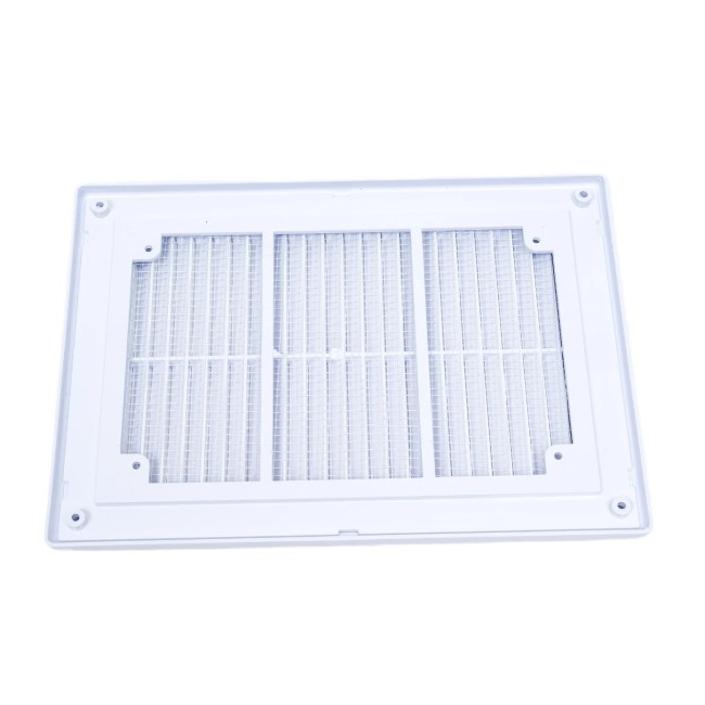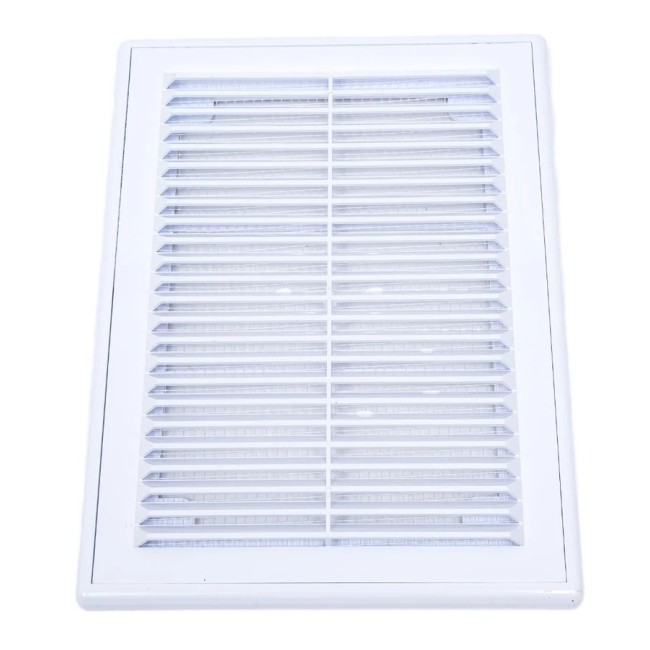 Решетка вентиляционная используется для декоративного оформления выходов приточных или вытяжных вентиляционных систем. Изготавливается из качественного ABS-пластик. Наклонные жалюзи скрывают шахту вентиляции и придают ей эстетичный вид. Модель оснащена антимоскитной сеткой, которая препятствует попаданию внутрь мусора, пыли, насекомых. Разъемная конструкция решетки облегчает ее обслуживание. Для чистки достаточно отделить решетку от рамки, которая крепится к стене. Монтаж осуществляется с помощью клея.
