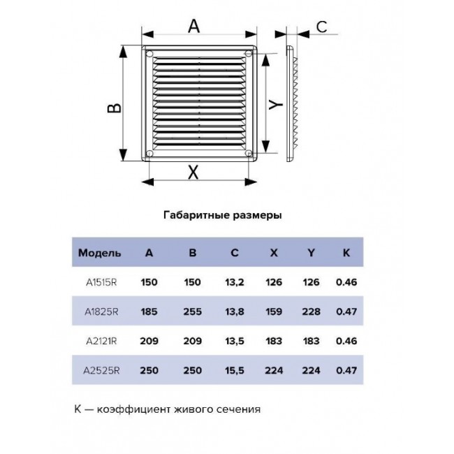 Решетка вентиляционная предназначена для декоративного оформления выходов приточных или вытяжных вентиляционных систем бытовых, общественных и промышленных зданий. Модель оснащена антимоскитной сеткой, которая препятствует попаданию внутрь мусора, пыли, насекомых. Разъемная конструкция решетки облегчает ее обслуживание. Для чистки достаточно отделить решетку от рамки, которая крепится к стене. Изготавливается из полистирола, который меняет цвет под воздействием ультрафиолета. Поэтому рекомендуется использовать AR в местах, куда не попадают прямые солнечные лучи. Монтаж осуществляется с помощью клея или саморезов.