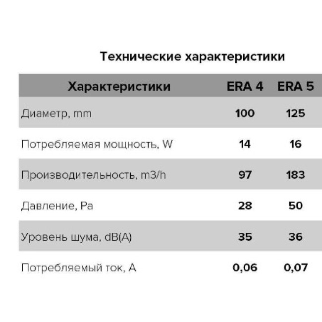Вентилятор ERA 5 применяется для постоянной и периодической вентиляции санузлов, ванных комнат, кухонь и других бытовых помещений. Оснащен антимоскитной сеткой. Монтируется при помощи шурупов в вентиляционные шахты или соединения с воздуховодами.