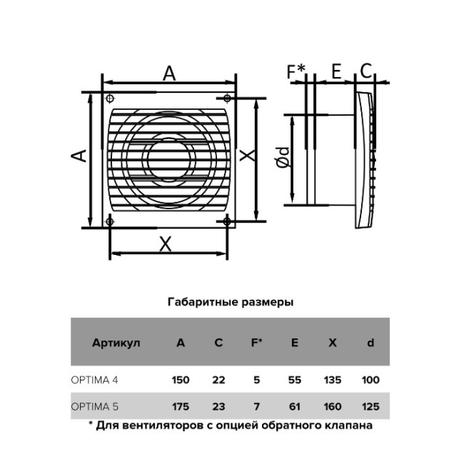 Вентилятор OPTIMA 5 осевой вытяжной d125 Ш175*В175 (18шт/уп) Эра