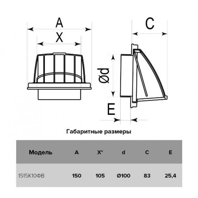 Выход стенной КФВ с обратным клапаном d100 Ш150*В150 (20шт/уп) Эра