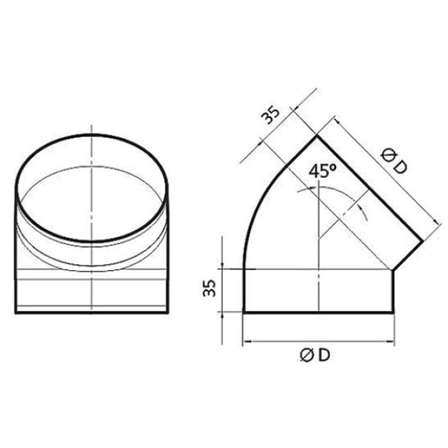 Колена круглые ККП используются для соединения воздуховодов соответствующего диаметра под углом 45°. Соединение осуществляется напрямую с воздуховодами.