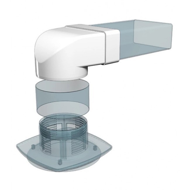 Предназначен для соединения плоских воздуховодов с круглыми под углом 90. С плоскими воздуховодами соединяются напрямую. С круглыми воздуховодами 511СП10КП, 612СП10КП монтируются при помощи соединителя СКП, остальные модели – напрямую.