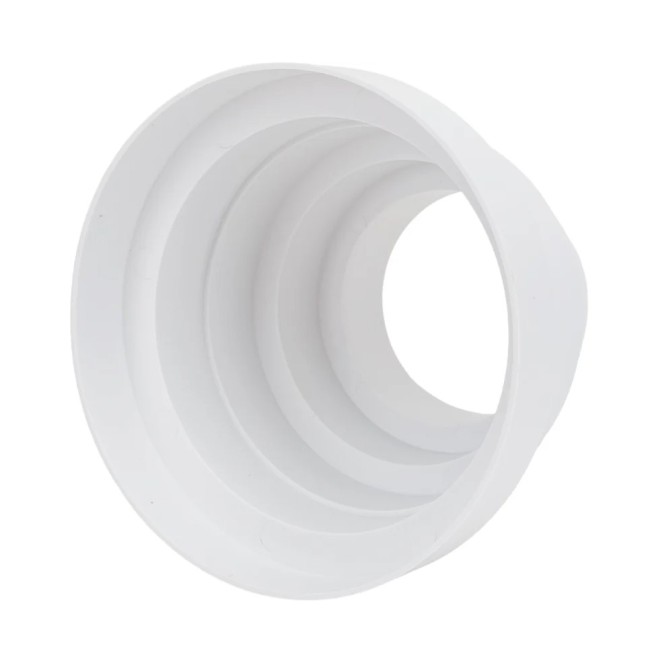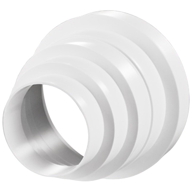 Переходник универсальный ПХ используется для соединения каналов разных диаметров. Корпус подрезается для получения редуктора с необходимыми диаметрами. Соединение осуществляется напрямую с воздуховодами. Можно установить вплотную к стене или потолку.