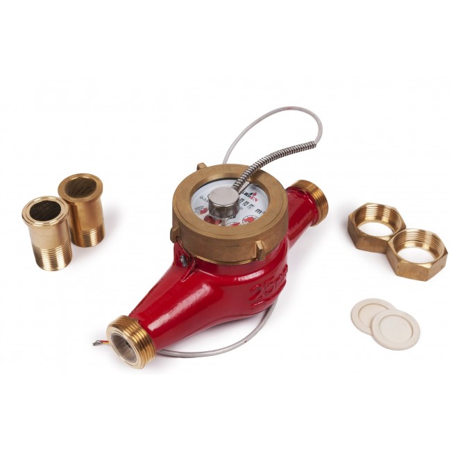 Водомер DRH Iron Ду-40 многоструйный сухоход, в комплекте с присоединителями Groen