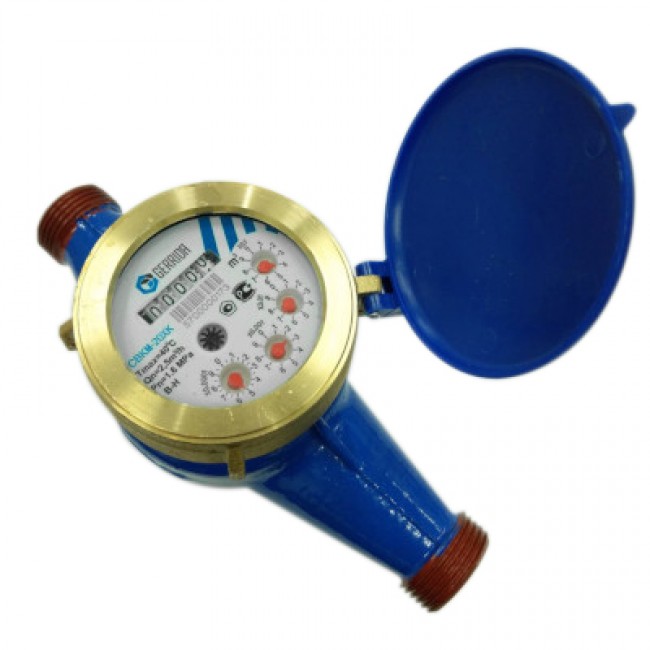 Водомер мокроход с глицерином GERRIDA, CBKМ 20 ХК латунь, со штуцерами, (L - со штуцерами: 270мм)