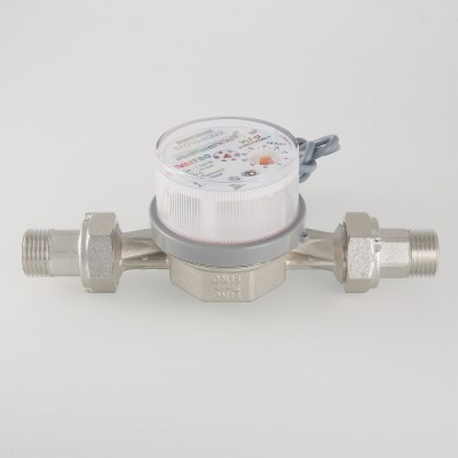 Водосчетчик универсальный – для измерения расхода холодной и горячей воды, главным образом – в квартирах. Условный диаметр модели – 1/2"; номинальный расход воды – 1,5 куб. м/ч. Длина прибора без сгонов – 80 мм. Резьба присоединительных патрубков – 3/4". Наличие импульсного выхода позволяет организовать дистанционное считывание показаний. Водосчетчик может быть оборудован каналом подключения стандарта RS-485. Для данной модели установлен увеличенный межповерочный интервал – 6 лет (на холодную и горячую воду).