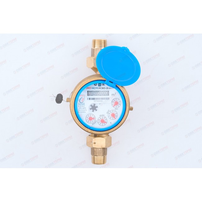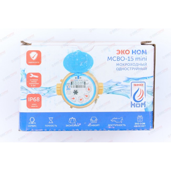 Счетчик воды МОКРОХОДНЫЙ одноструйный ЭКО НОМ МСВО-15 110 + КМЧ (для холодной воды с латунным комплектом монтажных частей) Класс влагозащиты - IP68 Устанавливается в многоквартирных домах, объектах коммунального хозяйства и частном секторе, на предприятиях и промышленных объектах, в колодцах и в помещениях с повышенной влажностью, которые подвергаются затоплению водой. Предназначен для измерения объема воды по СанПин 2.1.4.1074-01 и сетевой воды, протекающей по трубопроводу при температуре от 5° до 40°корпуса, вал - нержавеющая сталь, подшипник - однородный монокристаллический сапфир