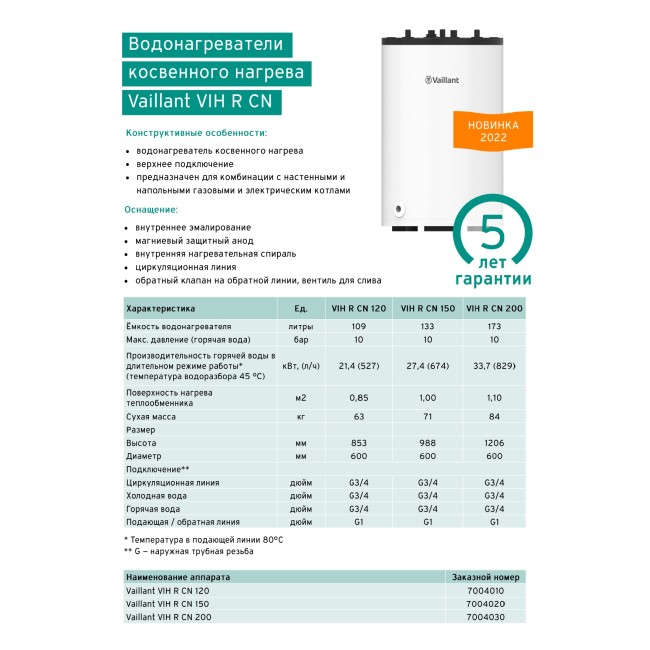 Бойлер косвенного нагрева 200л Storage Tank Vaillant