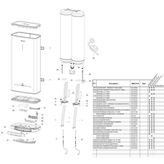 Мощность 2 нагревательного элемента, кВт | 2 шт по 0,75 |