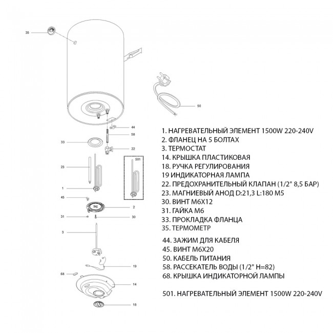 | Фактический объём внутреннего бака, литров | 50 |