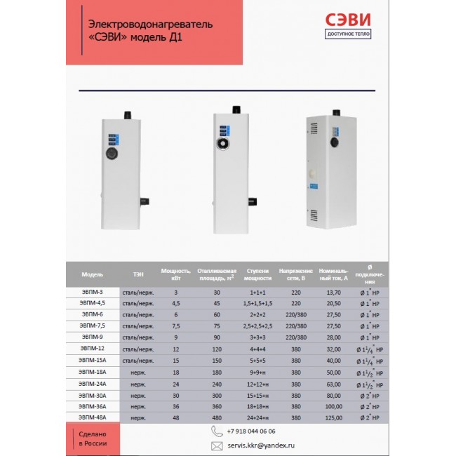 Электрический котел СЭВИ Д1 ЭВПМ предназначен для водяного отопления зданий имеющих открытую и закрытую отопительную систему, работающую при напряжение трехфазной сети 380 В ( от 6 кв и выше) или однофазной сети 220 В. ( 3 кв и 4.5 кв) Водонагреватель может использоваться автономно или совместно с отопительными котлами, работающими на твердом топливе.