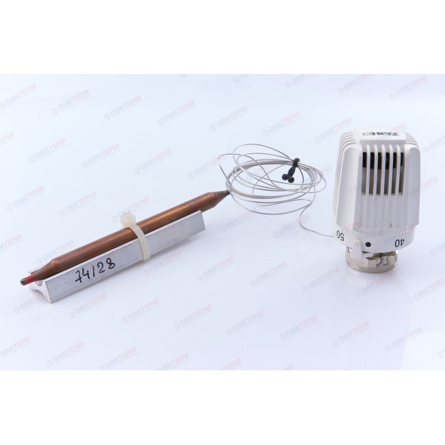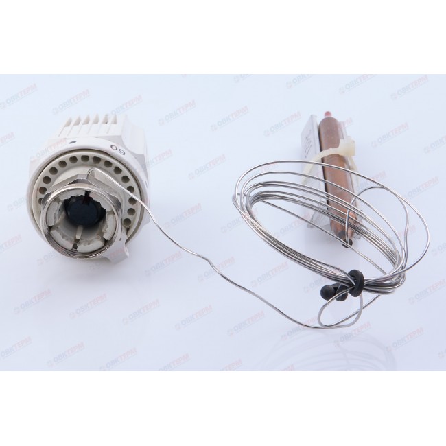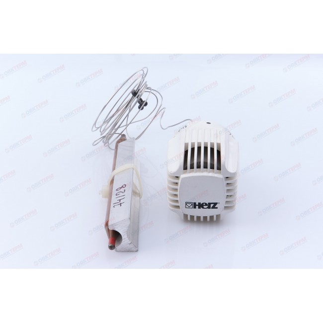 Термостатическая головка с накладным датчиком для напольного отопления, подходит ко всем термостатическим клапанам ГЕРЦ. Состоит из собственно головки с жидкостным датчиком, капиллярной трубки, накладного датчика и ложемента. Крепление к трубопроводу хомутами. Длина капиллярной трубки 2000 мм.