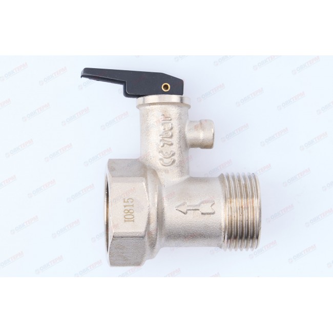 Количество в коробке: 100шт. Количество в упаковке: 10шт. Предохранительный клапан для бойлера, защищающий бытовой прибор от опорожнения при отсутствии напора холодной воды и от превышения установленного давления. с ручкой, латунный с никелированным покрытием, рабочее давление: 7 бар присоединение: 3/4" внутренняя - 3/4" наружная.