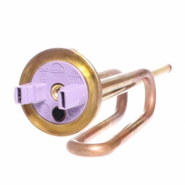 ТЭН - это трубчатый электронагреватель. Состоит из медной или стальной трубки, внутри которой находится теплопроводящий диэлектрик и нить накаливания. Трубка выполнена определенной длины для увеличения площади нагрева и загнута определенным образом для уменьшения габаритов ТЭНа. Концы трубки с контактами впаяны во фланец, на котором так же могут быть размещены трубки под термостат и термозащиту, а так же крепление для магниевого анода.
