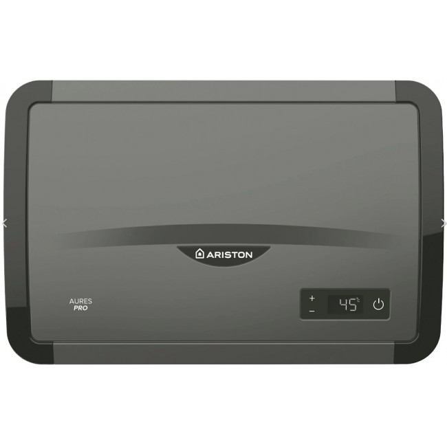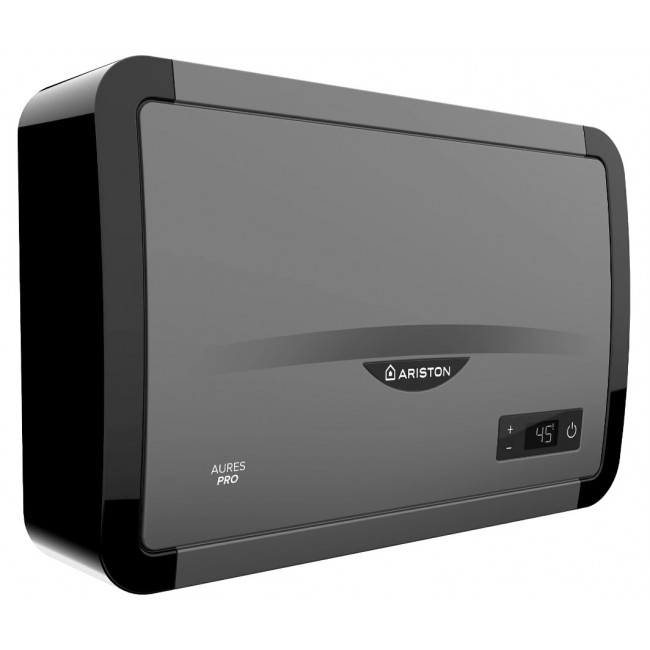 Рассчитан на несколько точек водоразбора. Дисплей с сенсорным управлением. Электронный термостат. Компактный размер и простая установка. Современный премиальный итальянский дизайн. Без кабеля питания. Гарантия : Водонагреватели серии AURES PRO - 3 года.