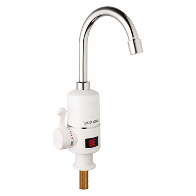 Проточный водонагреватель MIXXUS Electra 110-E с индикатором температуры. Электрический проточный водонагреватель на кран имеет ряд преимуществ: уменьшение расхода воды, почти мгновенный нагрев, простой монтаж, небольшие затраты электроэнергии. Проточный водонагреватель работает от сети и рекомендован к покупке, если у вас происходят систематические перебои с горячей водой. Водонагреватель MIXXUS чрезвычайно удобен в использовании благодаря своим компактным размерам. Кран с подогревом воды даст возможность в любое время пользоваться горячей водой на кухне, ванной комнате или там где есть необходимость в теплой воде.