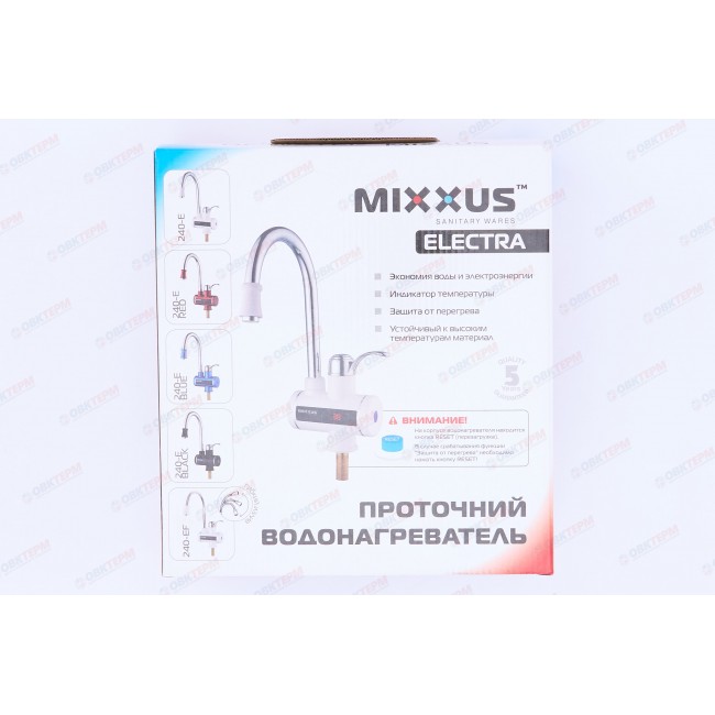Проточный смеситель водонагреватель MIXXUS Electra для умывальника или кухни минимизирует расход воды, устанавливается на мойку или умывальник. Быстро нагревает воду. В отличии от громоздких бойлеров, проточный водонагреватель на кран компактный и сэкономит драгоценное пространство на кухне или ванной комнате. Кран нагреватель воды энергоэффективный, так как потребляет 3-3,6 кВт. Покупая кран проточный водонагреватель MIXXUS, вы обеспечиваете себя бесперебойным пользованием горячей водой.
