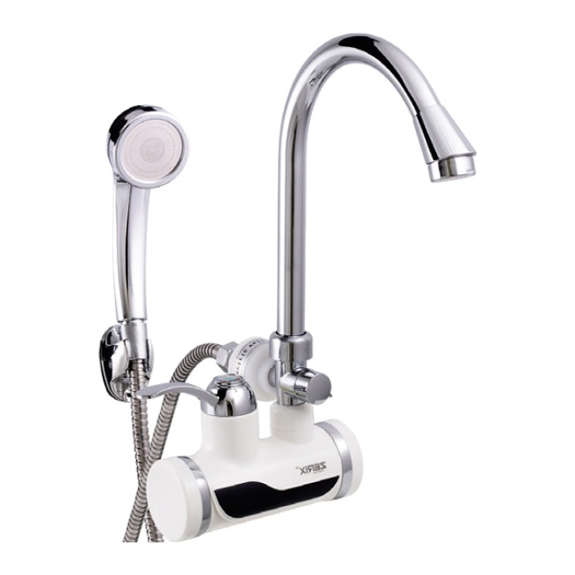 Проточный водонагреватель ZERIX ELW08-EW с индикатором температуры. Электрический проточный водонагреватель на кран Зерикс имеет ряд преимуществ: уменьшение расхода воды, почти мгновенный нагрев, простой монтаж, небольшие затраты электроэнергии. Проточный водонагреватель с душем работает от сети и рекомендован к покупке, если у вас происходят систематические перебои с горячей водой.
