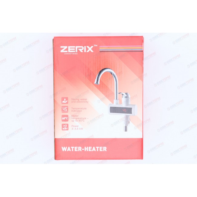 Проточный водонагреватель ZERIX ELW21 — это современный и безопасный водонагреватель воды. Устройство минимизирует расход воды и нагревает воду за считанные секунды. Так же он более финансово выгоден чем накопительный водонагреватель.Данная модель крана имеет высокий хромированный излив. Отдельные хромированные элементы дополняют минималистичный дизайн. Смеситель имеет нижний тип крепежа - на мойку. Нагревательный элемент мощностью в 3 кВт способен обеспечить за 30 секунд поток горячей воды (до 60 градусов) со скоростью 2-2,5 литров/мин.