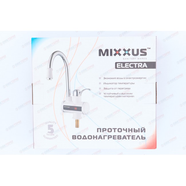 Проточный смеситель водонагреватель MIXXUS Electra для умывальника или кухни минимизирует расход воды, устанавливается на мойку или умывальник. Быстро нагревает воду. В отличии от громоздких бойлеров, проточный водонагреватель на кран компактный и сэкономит драгоценное пространство на кухне или ванной комнате. Кран нагреватель воды энергоэффективный, так как потребляет 3-3,6 кВт. Покупая кран проточный водонагреватель MIXXUS, вы обеспечиваете себя бесперебойным пользованием горячей водой.