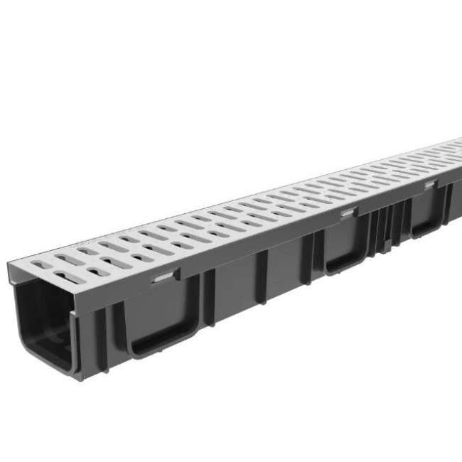 Комплект лоток водоотводный пластиковый, с решеткой 1м оцинкованной, кл. A15 Gidrolica Light