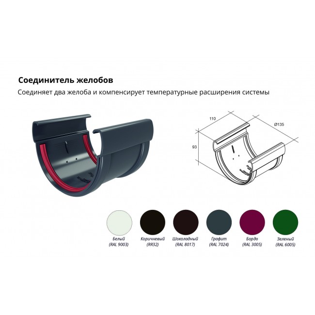 Соединитель желобов Дизайн 135 ПВХ Grand Line графит (RAL 7024)