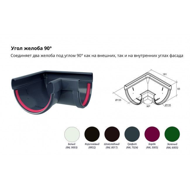 Угол желоба 90 град. Дизайн 135 ПВХ Grand Line графит (RAL 7024)