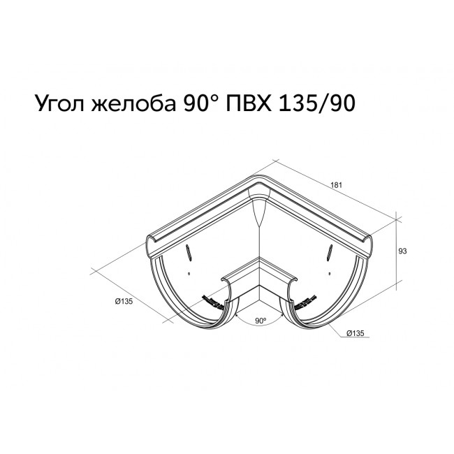 Угол желоба 90 град. Дизайн 135 ПВХ Grand Line шоколадный (RAL 8017)