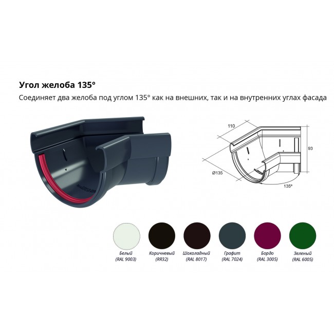 Угол желоба составной 135 град. Дизайн ПВХ Grand Line графит (RAL 7024)