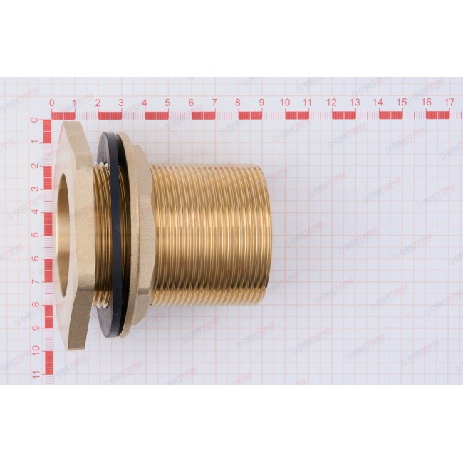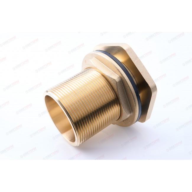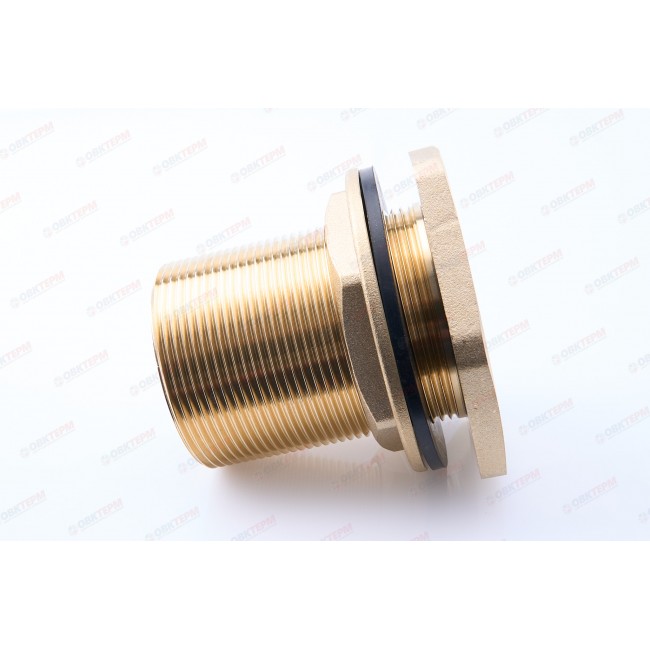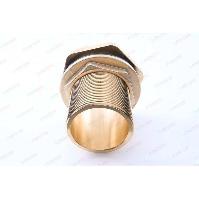 Врезка «TIM» в ёмкость (отвод из бака) 2 дюйма из латуни. В комплекте с резиновыми прокладками и прижимной гайкой. Используют под установку в отверстие плоской поверхности стенок ёмкостей, для соединения с магистралью, для наполнения или слива жидкостей.